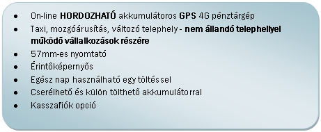 A mobil szolgáltatás havi díja 1.500,-Ft+ÁFA / hó / gép. Szerződéskötést cégünk a gép vásárlásakor intézi.